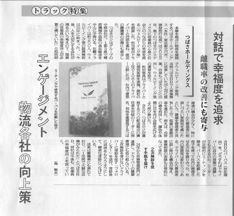 この度、3月24日(火)発行の輸送経済新聞社による「トラック特集」において、つばさグループのウェルビーイング活動に関する記事が取り上げられました。